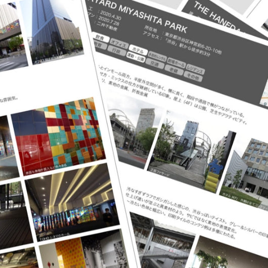 建築物の素材にフォーカスした、当社オリジナルトレンド情報資料。模様や素材、使い方など。